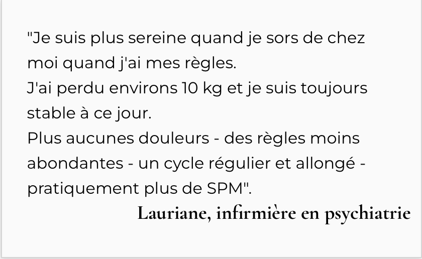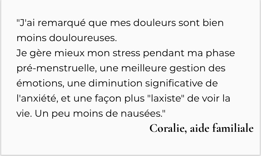 Tu sens que ton corps travaille avec toi, et non contre toi. Tu ne redoutes plus l’arrivée de tes règles.